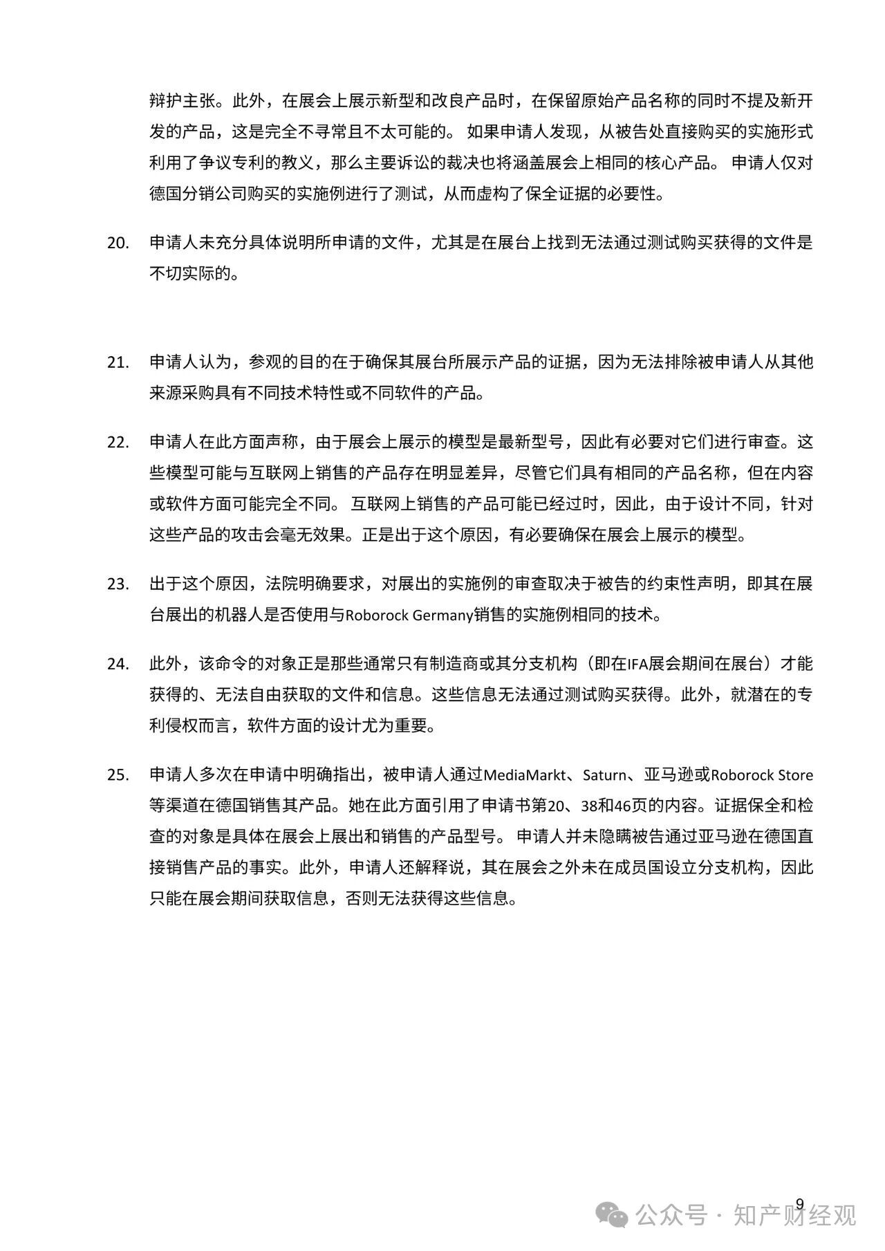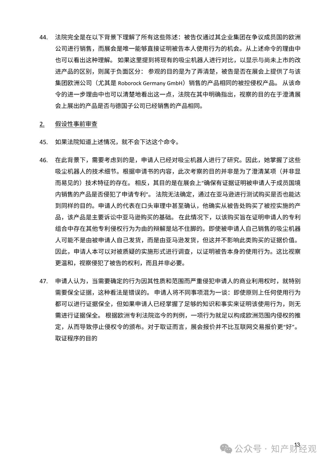 所谓单方命令,是指法院在未通知、未听取对方当事人意见的情况下,应权利人申请直接作出的临时性司法措施,常见类型包括证据保全、现场检查、临时禁令等。在本案中,争议的单方命令系用于在德国柏林举办的 IFA 展会期间,对石头科技展出的相关产品实施现场检查并进行证据保全。