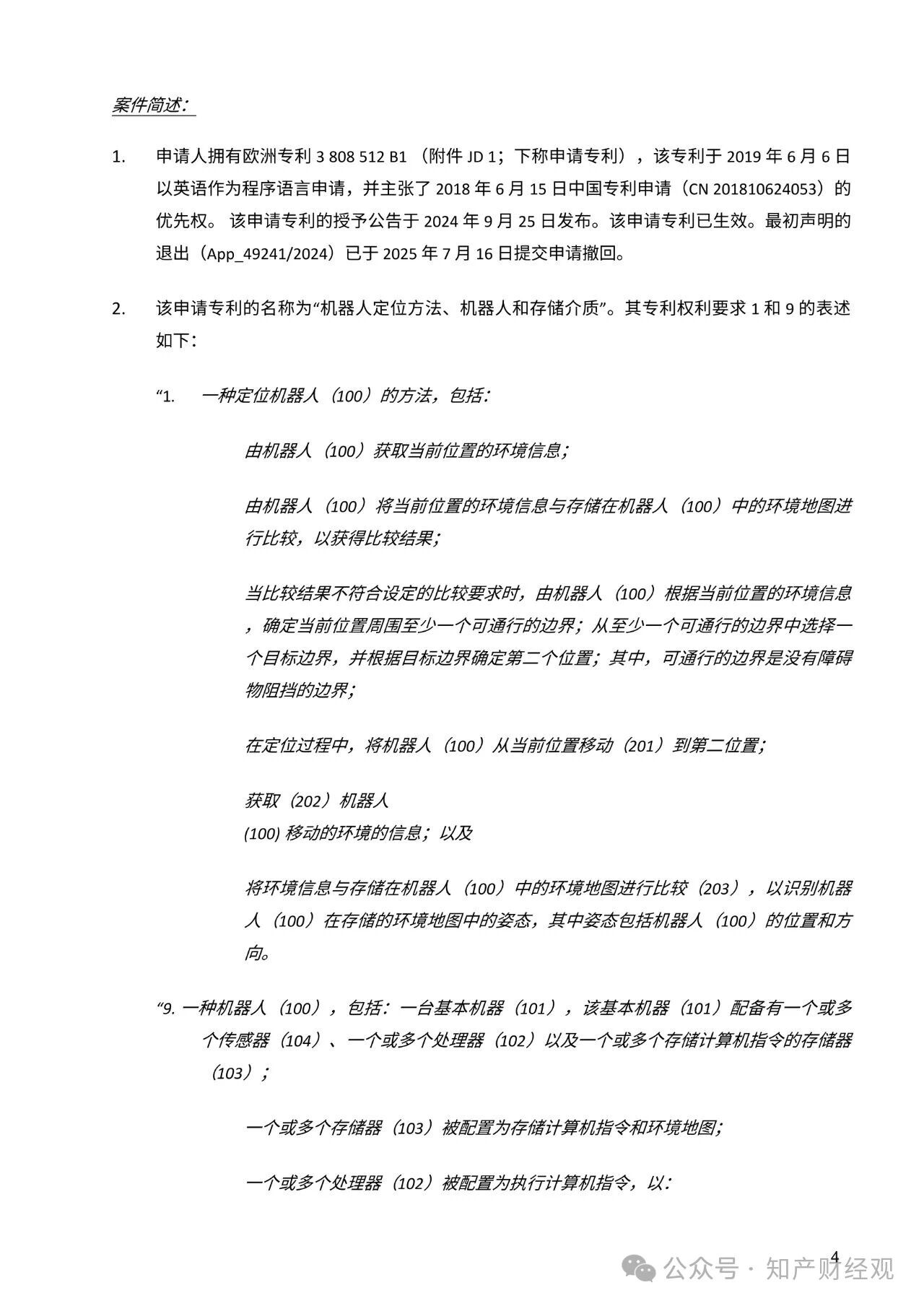 2025年9月3日,科沃斯在欧洲统一专利法院(UPC)杜塞尔多夫地方分院起诉石头科技,指控其在欧洲市场侵犯专利 EP3808512B1(案号:ACT_36001/2025);