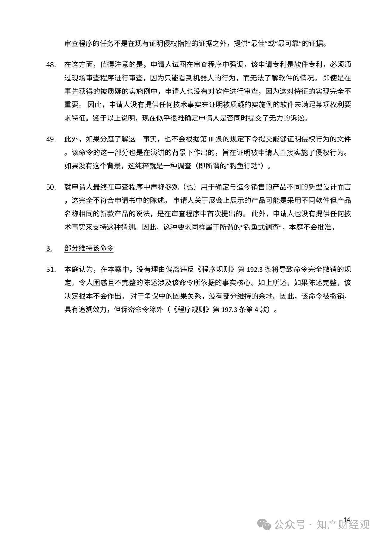 所谓单方命令,是指法院在未通知、未听取对方当事人意见的情况下,应权利人申请直接作出的临时性司法措施,常见类型包括证据保全、现场检查、临时禁令等。在本案中,争议的单方命令系用于在德国柏林举办的 IFA 展会期间,对石头科技展出的相关产品实施现场检查并进行证据保全。