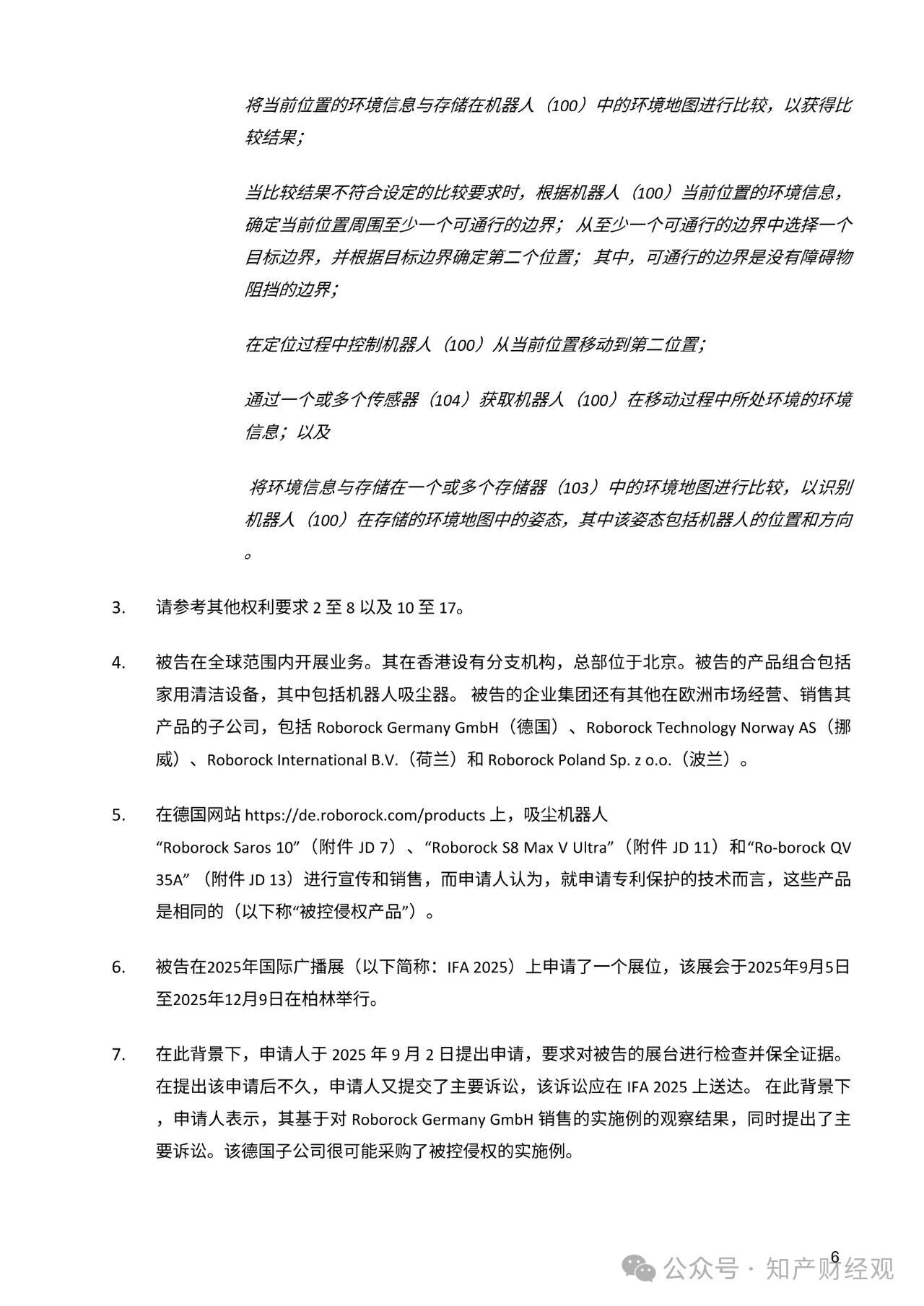 2025年10月7日,石头科技在德国慕尼黑第一地区法院申请临时禁令获支持,禁止科沃斯在德国销售 DEEBOT N20 PLUS/PRO PLUS,涉及专利 EP3231340(案号:21 O 12347/25);